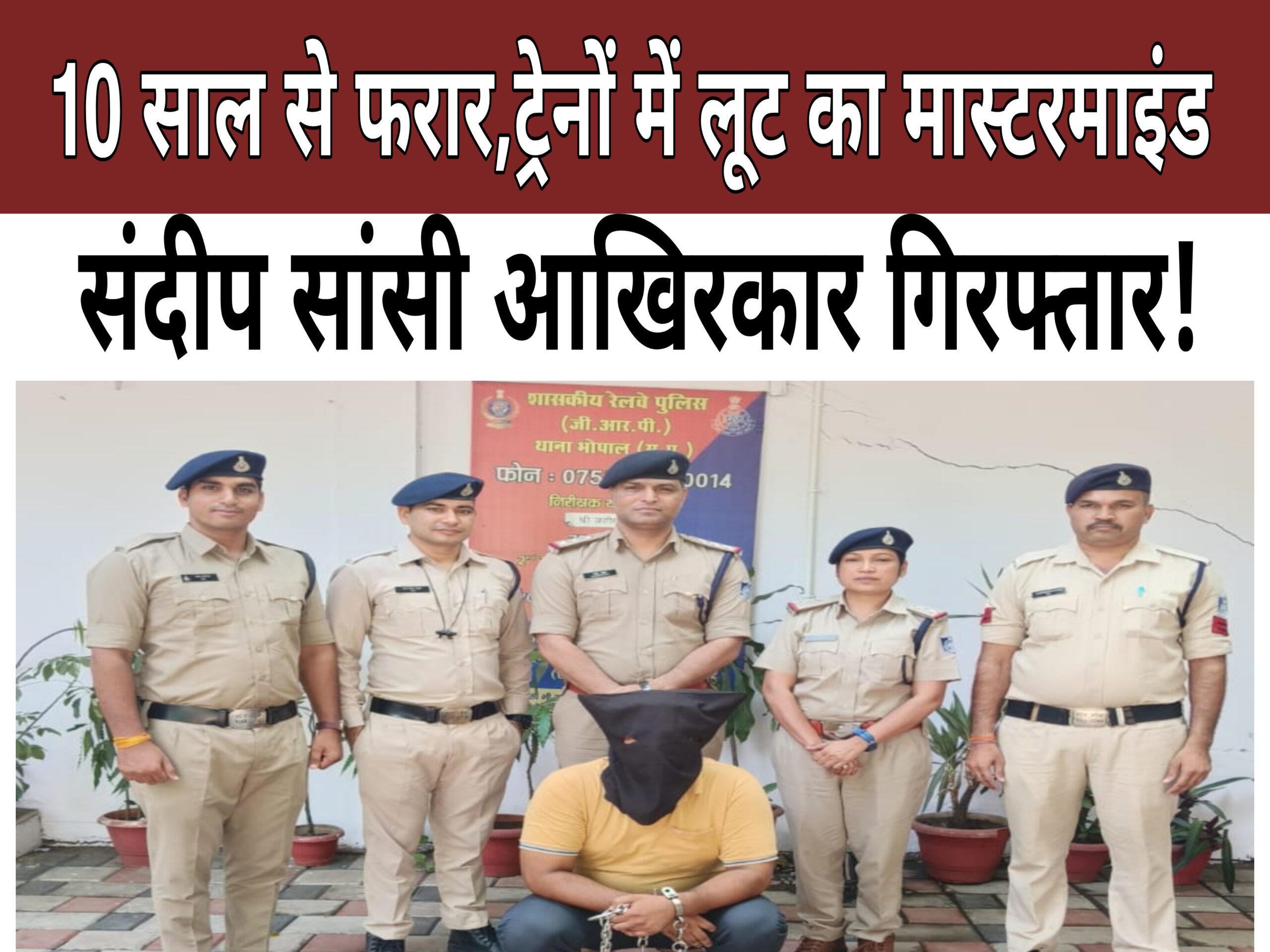 Bhopal– मध्य प्रदेश की राजधानी भोपाल में रेलवे पुलिस को कुख्यात गैंग के लीडर को गिरफ्तार करने में बड़ी सफलता प्राप्त हुई है।जीआरपी थाना प्रभारी जहीर खान के कुशल नेतृत्व में गठित टीम ने हरियाणा के कुख्यात सांसी गैंग के वारंटी संदीप पिता दलवीर सिंह (उम्र 30 वर्ष), निवासी ग्राम खेड़ी, थाना हांसी, जिला हिसार (हरियाणा) को 10 साल पुराने मामलों में रोहतक, हरियाणा से गिरफ्तार करने में सफलता प्राप्त की है। संदीप के खिलाफ कुल 12 वारंट लंबित थे, जिनमें 11 स्थायी वारंट और 1 गिरफ्तारी वारंट शामिल हैं। वह हरियाणा की सांसी गैंग का लीडर है, जिसकी तलाश जीआरपी भोपाल पुलिस को लंबे समय से थी।